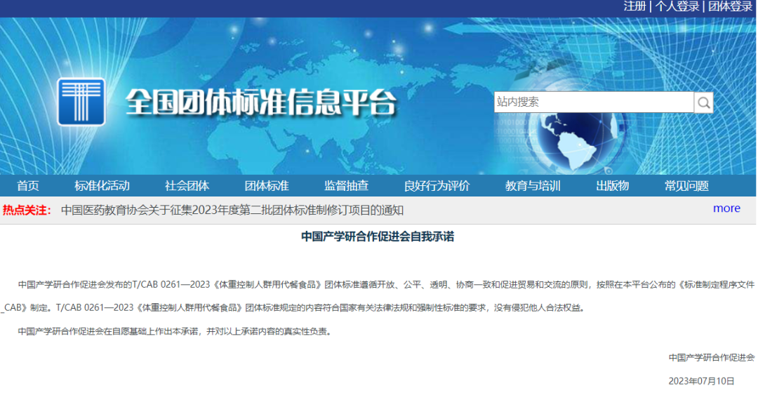 由中国产学研合作促进会组织,至睿生物参与起草编制的《T/CAB 0261—2023体重控制人群用代餐食品》团体标准,经中国国家标准化管理委员会审核,符合《中华人民共和国标准化法》、《团体标准管理规定》和《中国产学研合作促进会团体标准管理办法》的相关规定,自2023年7月10日起开始实施。该团体标准适用于需要控制体重的成年人群食用的代餐食品,现已在全国团体标准信息平台正式发布。