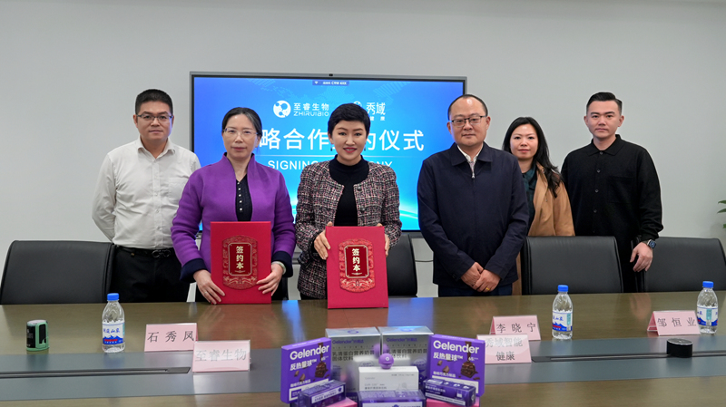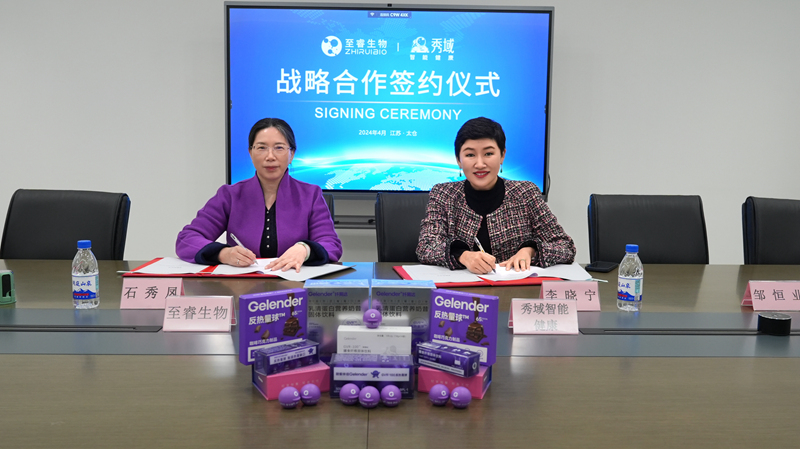 图:至睿生物总经理石秀凤女士与秀域健康董事长李晓宁女士签署战略合作协议